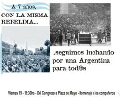 Además, explicaron que "los jóvenes tomamos como referencia a cada una de las almas caídas en aquella rebelión histórica y nos cargamos con todas sus ansias de cambiarlo todo". Es por eso que, al cumplirse siete años, se movilizarán para conmemorar "esa rebelión histórica y para homenajear a los compañeros de la mejor manera, en la calle, con los mismos sueños, levantando la bandera de una Argentina para todos".