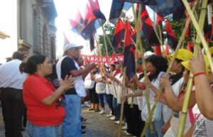 Allí comenzaron a reunirse compañeras y compañeros con sus familias, que venían desde las diferentes barrios y de compañeros que trabajan en la constructora EMETELE