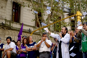 La medida de protesta que llevaron a cabo había sido acordada la semana pasada luego del rechazo de los 17 sindicatos del magisterio porteño a una propuesta de aumento de una suma de 110 pesos para el sueldo inicial, transmitida por el ministro de Educación de la Ciudad, Mariano Narodowski.