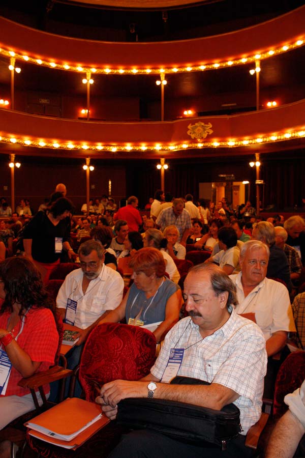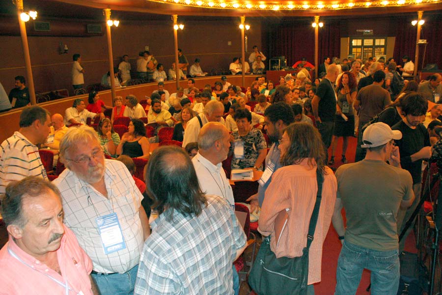 A las 9 de la mañana las delegaciones provenientes de todo el país comenzaron a acercarse al Teatro Margarita Xirgu. Al tiempo que los delegados se acreditaban, los abrazos, reencuentros y vivencias se agolpaban en aquellos compañeros que volvían a encontrarse.