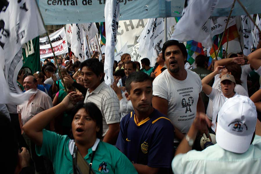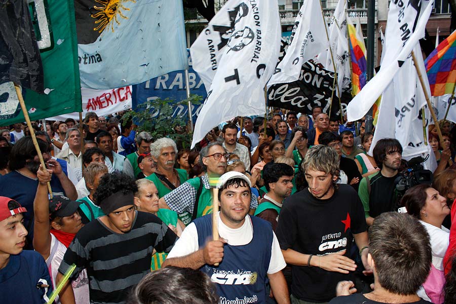 Más de 5 mil personas marcharon esta tarde hacia el Ministerio de Trabajo de la Nación y realizaron un acto bajo la consigna “Para que la crisis no la paguemos los trabajadores”. La movilización se produjo al cierre del Congreso Nacional de Delegados de la CTA, en el marco de una Jornada Continental de lucha convocada por la CSA. Hugo Yasky insistió en la convocatoria a la jornada de lucha para el 22 de abril, y advirtió que si no hay respuesta favorable del Gobierno a las demandas de los trabajadores, podría convocarse a un paro nacional.