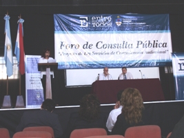 La apertura del debate público estuvo a cargo del Gobernador de la provincia de Entre Ríos, Sergio Urribarri, y del Interventor del COMFER, Gabriel Mariotto. Estuvieron acompañados del diputado nacional Raúl Solanas y la senadora nacional Blanca Osuna del FPV. Paraná (Entre Ríos) es la tercera ciudad donde se ha desarrollado el Foro de consulta pública después de Resistencia (Chaco) y Posadas (Misiones).