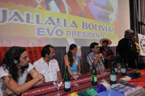 El encargado de la presentación fue Carlos Leavi, secretario general de la CTA Regional La Plata-Ensenada, quien destacó la calidad del trabajo y cedió la palabra a los realizadores. Mariano Vázquez (que además es el editor de la Agencia CTA) expresó que “no fuimos como outsiders o meros espectadores, sino que fuimos convencidos de la necesidad de sostener ese proceso revolucionario que es ejemplo en América Latina, donde (con sus más y sus menos) se están multiplicando los avances populares”. Lucía Martín agregó que “la pelea del pueblo boliviano se está ganando primero desde lo simbólico, pero además hay que destacar que Evo no es representante: Evo es el pueblo y el pueblo es Evo”.
