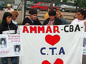 Una vez en la calle, los familiares de Rosa y un grupo de militantes de AMMAR y de la CTA Córdoba, cortaron durante una media hora la calle al grito de “¡Asesinos! ¡Asesinos!”, mientras voceaban en medio de la lluvia duras consignas contra “la complicidad corrupta” de los jueces y la Policía, que antes de la audiencia las había requisado prolijamente, despojado de sus pertenencias y ubicado por separado en la sala.