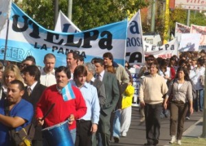 Durante toda la movilización –en la que participaron trabajadores de toda la provincia- se anunciaban por los altoparlantes que acompañaban la marcha, los ejes provinciales y nacionales de la lucha, como así también reiteraban el pedido de personería gremial para la Central.