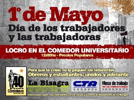 Por otra parte, mañana viernes 1º de mayo, en el Comedor Universitario, se realizará el tradicional Locro del Día del Trabajador. La convocatoria es realizada por la Central de Trabajadores de la Argentina de Córdoba; el Movimiento Universitario Independiente La Bisagra y la Mesa de Trabajo por los Derechos Humanos. La cita es a partir de las 12.00. Precios populares.