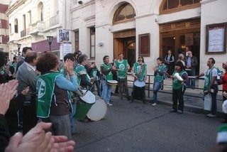 La asamblea comenzó recorriendo el edificio e invitando a los compañeros a sumarse, luego a unos metros, en el Teatro Municipal estaban reunidos varios funcionarios municipales (entre ellos el Intendente Juan Jure) que estaban inaugurando la “Expo Social”.