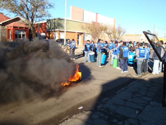 Ante las amenazas que recibieran los trabajadores por adherirse al paro y en razón de no haber recibido el pago de sus haberes mensuales, por parte de la empresa Seguridad Patagónica, los trabajadores decidieron concentrarse en frente de la misma y procedieron a quemar cubiertas en señal de protesta.