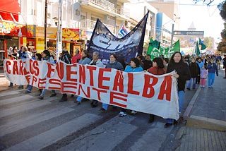 Más de 6.000 trabajadores se movilizaron en Neuquén Capital en el marco del paro nacional dispuesto por la Central. La marcha recorrió puntos neurálgicos de la ciudad capital como la Casa de Gobierno y el Superior Tribunal de Justicia, y se repitió el pedido de justicia para Carlos Fuentealba, el maestro asesinado por la policía del ex gobernador Sobisch.