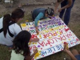 En primer lugar, una vez terminado el almuerzo, se finalizó la pintada de carteles de la Copa, con la posterior colocación por parte de los cumpas de la CTA.