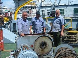 A metros de la comilona reposa en la “cama”, que ellos le prepararon, un buque en reparación. La tarea de sacarlo del agua lo hace un dique que se hunde y se levanta con el barco a cuestas. Esa imponente maquinaria es manejada por Juan desde 1981. No hay otro que lo sepa hacer ni hay nadie que aprenda lo que el sabe. Tal vez porque hace veinte años que no toman gente en la repartición. El, como tantos de sus compañeros, ya está en edad de jubilarse y no tiene quien lo reemplace. La política de “el último que apague la luz”, parecería ser.