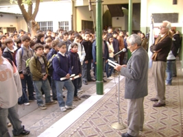El jueves, a las 11.00 y 17.00, en los dos turnos de la Escuela Técnica Enrique Mosconi de la localidad de Quilmes Centro- (500 alumnos en total), se hicieron presentes los compañeros del Movimiento Oro Negro-FeTERA en los actos por la recordación del fallecimiento del General-Ingeniero Enrique Mosconi.