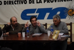 El panel estuvo integrado por el autor, Gonzalo Cháves, Director del IDEP de ATE Buenos Aires y Hugo Godoy, Secretario General de ATE y la CTA bonaerense.