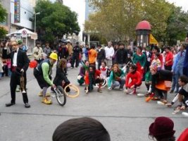 La invitación a los pibes fue llevarlos a disfrutar de una función que se realizó en la Plaza Central de esa ciudad del sur cordobés que lleva el nombre del genocida Julio Argentino Roca. Con desfile incluido acompañamos a los cirqueros por las calles céntricas al ritmo de la percusión del "Grupo Maroma" con el que bailamos para entrar en calor.