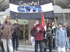 La CTA Capital participó ayer al mediodía de la concentración frente al Sanatorio Mitre de la Ciudad Autónoma de Buenos Aires, en apoyo a los trabajadores de dicha clínica, que fueron suspendidos por reclamar mejoras salariales.