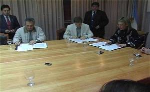 El acuerdo fue firmado por la gobernadora Fabiana Ríos, el intendente Federico Sciurano y el representante del MOI, Néstor Jeifetz, en un acto que contó con la presencia del ministro de Gobierno, Guillermo Aramburu; de Obras Públicas, Daniel Lépez; el legislador Osvaldo López; integrantes de la Central de Trabajadores de la Argentina (CTA) y del Foro Social Urbano.