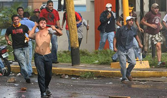 A pesar de que la administración golpista, encabezada por Roberto Micheletti, ha impuesto el toque de queda, que se desconoce el paradero de muchos ministros y funcionarios del Gobierno Constitucional de Manuel Zelaya y que los medios de comunicación han sido militarizados para controlar la información emiten, las organizaciones sociales hondureñas se siguen manifiestando en todo el país para repudiar el secuestro y expulsión del presidente legítimo y en apoyo al proceso de cambio que inició. Un muerto, 7 detenidos y desaparecidos, entre ellos el alcalde de San Pedro Sulá, es el saldo hasta el momento -confirmado por el equipo de TeleSUR- tras la represión desatada ayer.