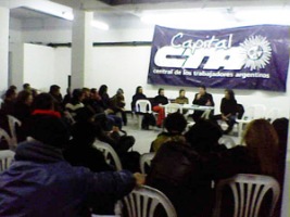 Integrantes de la Mesa Ejecutiva de la CTA Capital y Nacional abrieron el encuentro poniendo especial énfasis en la importancia del desarrollo de la organización de los trabajadores de la actividad privada en la CTA. Pero que ese desarrollo debía sostenerse en un análisis conciente sobre las nuevas formas del trabajo, la organización del capital y consecuentemente las relaciones entre el conflicto y las formas de organización sindical.