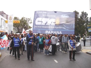 A las diez de la mañana concentraron estatales, docentes, judiciales, trabajadores mercantiles, tarjeteros, empleadas en casas de familias, del turf, precarizados, jubilados, la reciente agrupación textil constituida “Algodoneros Unidos”, centros de estudiantes y movimientos territoriales en la intersección de calle Laprida y Buenos Aires de la ciudad de Paraná.