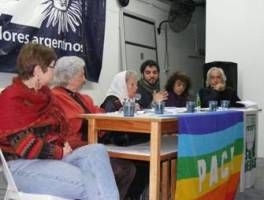 En la mesa, acompañaron a Nora Cortiñas, Beverly Keene, coordinadora de Jubileo Sur, Rina Bertachini, Presidenta del Movimiento por la Paz, la Soberanía y la Solidaridad entre los Pueblos, Graciela Rosemblung, Presidenta de la Liga Argentina por los Derechos del Hombre y Ricardo Peidro, Secretario de Derechos Humanos de la Central de Trabajadores de la Argentina (CTA).