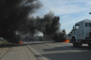 La protesta, se realizó en un comienzo a la vera de la ruta provincial 226. Allí llegaron los trabajadores y delegados quienes de manera pacífica, invadieron la cinta asfáltica. Con las banderas características y el atuendo de trabajo, los compañeros obreros y los dirigentes sindicales hicieron uso del derecho de protesta, haciéndose escuchar enérgicamente a través de sus bombos y de la columna de humo provocada por los neumáticos que estaban a los costados de la ruta.