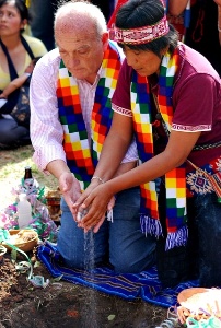 La jornada calurosa se fue desarrollando bajo los principios del ritual andino, donde por parejas (hombre y mujer), fueron dándole nuestras ofrendas a la madre tierra: chicha, quinoa, dulces, tabaco, papas y porotos, son algunas de las cosas que le entregamos a la pacha para agradecerle, esto lo realizaremos cada año en el mes de los vientos.