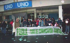Convocados por el Foro de Comunicación Santafesino (FOCOS-CTA) y la Lista Celeste-Unidos para el Cambio de la Asociación de Prensa de Santa Fe, más de 50 trabajadores de prensa se movilizaron ayer a la tarde frente al edificio de Diario UNO para repudiar los despidos injustificados de dos compañeros.