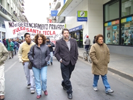 Luego, se realizó una marcha hacia la plaza principal de la capital salteña, donde hubo un intento por parte de la policía de no dejar pasar a los manifestantes porque se está celebrando la Novena del Señor y la Virgen del Milagro. "Es la misma Iglesia que nos respondió a la nota presentada en la curia donde le pedíamos que intervenga en el conflicto para que se termine el gerenciamiento privado y que se comprometa con los pobres, que ellos no podían hacer nada, a lo sumo gestionar una reunión con la gente del Gobierno, que hasta ahora no se produjo", indica un comunicado gremial.
