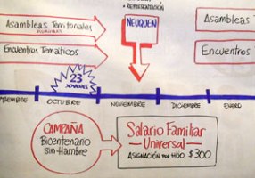 Salud, educación, recursos naturales, falta de vivienda, fueron algunos de los ejes que se trabajaron en la larga jornada rosarina. El hambre inventado para someter a nuestro pueblo se torna en el primer eje de lucha común de la Constituyente y va tomando forma en la campaña por el Salario Familiar para todos: “Bicentenario sin hambre”.