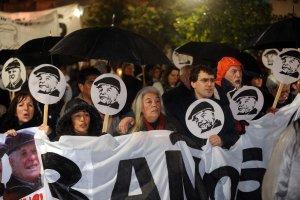 “Reafirmamos que el secuestro de Julio López fue posible porque sigue existiendo lo esencial del aparato represivo de la dictadura, y decimos que de no haberlo desmantelado son responsables los gobiernos, desde Alfonsín hasta Cristina Fernández”, expresaron los organizadores de la marcha porteña en el documento que fue leído al pie de la Pirámide de Mayo, mientras artistas callejeros pintaban con stencil sobre su blanca superficie “aparición de López y Arruga”.