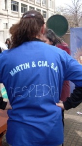 Cesar Baliña, vocal del Concejo Directivo Provincial, dijo: “Hay que romper todavía esquemas de un viejo sindicalismo. La fuerza de los compañeros despedidos nos reconforta, porque ellos dijeron hasta acá con este modelos sindical, queremos otro que nos represente y en el que nosotros seamos los protagonistas. Y por eso hoy, desde ATE y CTA estamos en la calle”. “No vamos dejar de luchar hasta que nuestros compañeros no estén trabajando como corresponde, y puedan elegir donde organizarse