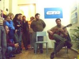 Ante un número considerable de público que se ubicó como pudo en cada recoveco de la casa, en cada habitación y hasta en el pasillo de entrada, el compañero Juan, de la CTA, comenzó dando la bienvenida a los presentes y explicó de qué se trata este nuevo espacio que estamos construyendo, anunció además los talleres que se comenzarán a dar en la Casa y el incio del ciclo de cine permanente. Luego le dió la palabra a Raúl Pruvost.