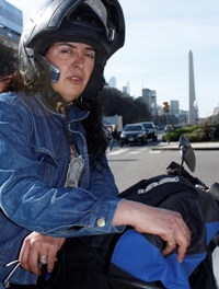 Para esta mujer de 37 años la moto es una parte de su cuerpo. Y el casco también. Silvia, más conocida por todos como “La Negra”, trabaja hace 12 años arriba de las dos ruedas. Y dice que no podría vivir de otra manera.