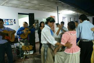 El domingo de La Cortada empieza tranquilamente en Corrientes. La ciudad está y justo hay tiempo libre para darse cuenta. Se despiertan al mediodía, junto al río los viejos edificios de la Dirección de Vías Navegables, actual CIAC-CTA. Aquí, la Asociación de Productores Urbanos presenta una feria de platos. Entre otras exquisiteces Borí, Borí, el criollo Mbaipy, empanadas y demás. Siesta de mate o tereré, sigue la exposición de pinturas y dibujos y al atardecer, se lanza de nuevo el show. Danzas folclóricas que nos ofrecen los chicos y chicas del taller Brisas Costeras, la pareja chamamecera Arnaldo y Leticia. Increíble. Una clase de baile de chamamé de lo mejor que se ve entre la juventud local, aunque el mozo es del interior. O quizás por eso. Aplausos y sapukay para los chicos. A continuación, el trío chamamecero Selva Guaraní y el dúo Silvana y Hernán. Música de acá, onda tranqui. Homenaje al General Andresito Guacurarí y hasta una hermosa versión de “Te recuerdo Amanda” de Víctor Jara.