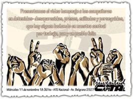 Hoy a las 18.30, en el anfiteatro de ATE Nacional, la Juventud de la CTA Capital presentará un video-homenaje a los compañeros ex detenidos desaparecidos, presos, exiliados y perseguidos durante la última dictadura militar y que hoy se encuentran militando dentro de la Central de Trabajadores de la Argentina.