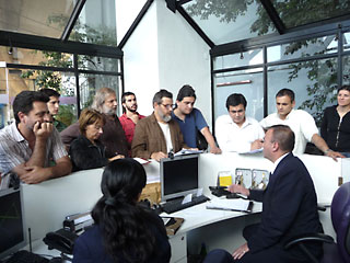 Ricardo Junghanns y Marcelo Moreira, editores del canal, llegaron esta tarde acompañados del secretario gremial de la UTPBA, una escribana pública y dos inspectores de la cartera laboral, que certificaron fehacientemente que la empresa no les permite a los delegados el acceso a sus puestos de trabajo.