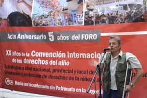 Por su parte Adolfo Aguirre, Coordinador Provincial del Foro y secretario de Relaciones Internacionales de la CTA, sostuvo que se ha avanzado mucho en estos 5 años desde que el Foro fue fundado, que muchos fueron los logros obtenidos, y por ello mucha la resistencia que se encuentra en el camino de sectores que no quieren abandonar la lógica y práctica del patronato, al respecto Aguirre sostuvo que “no vamos a dar ni un paso atrás en todo lo que hemos logrado, en términos de derechos, de verdad y de justicia”.