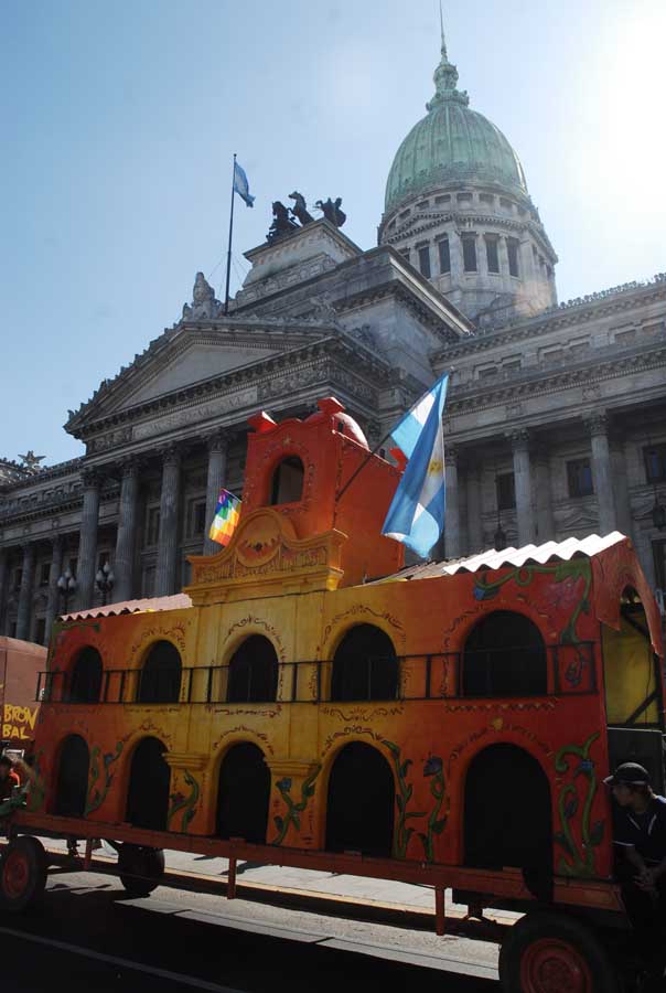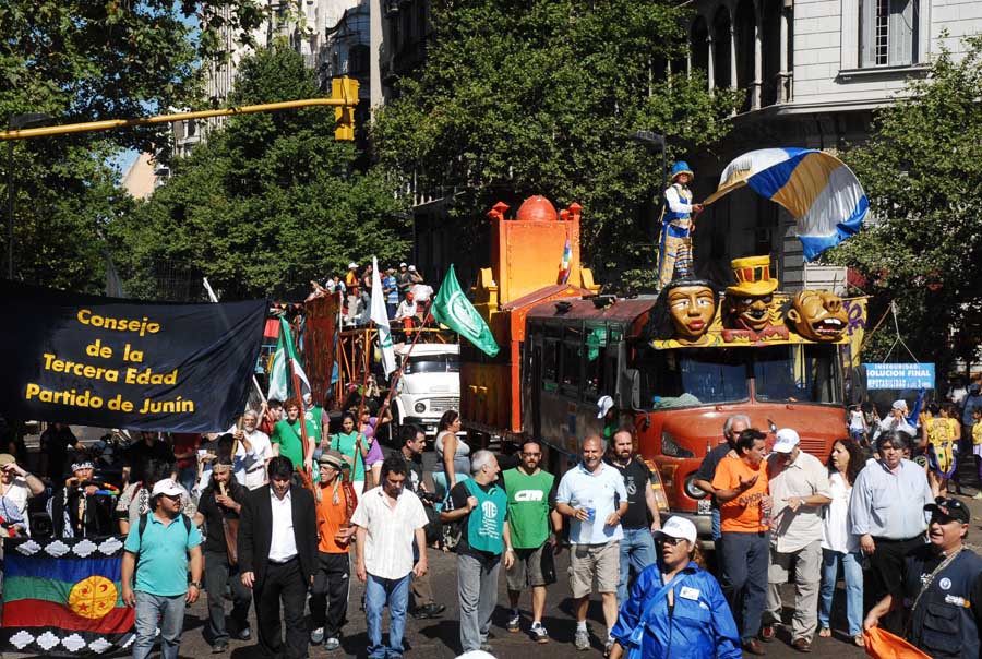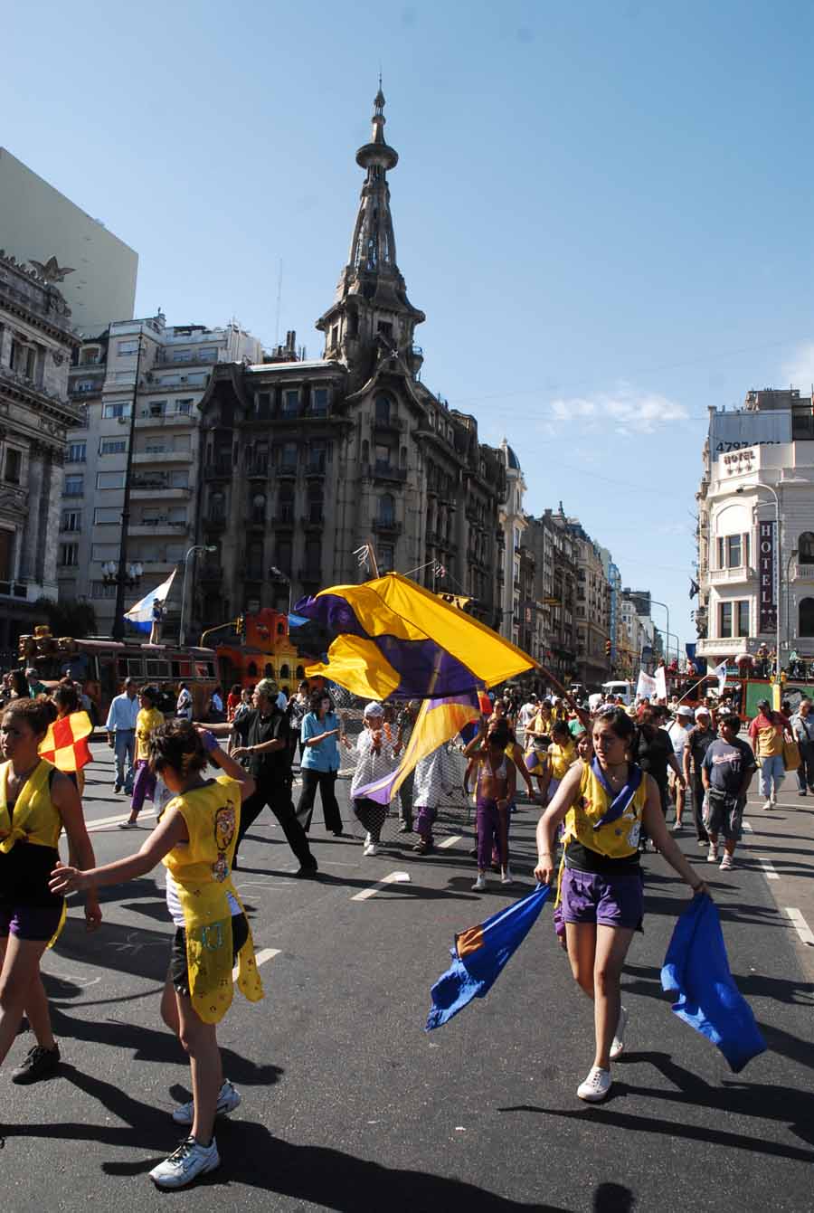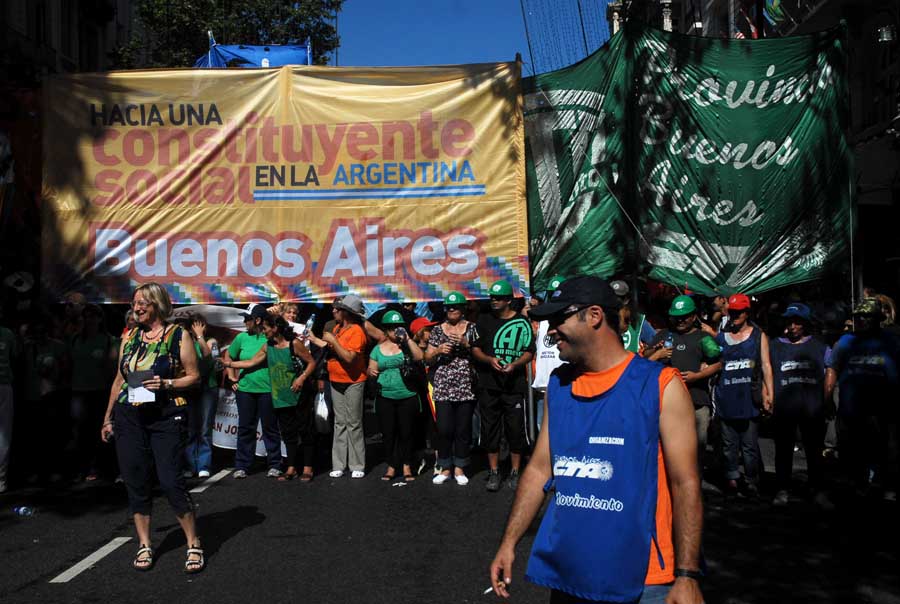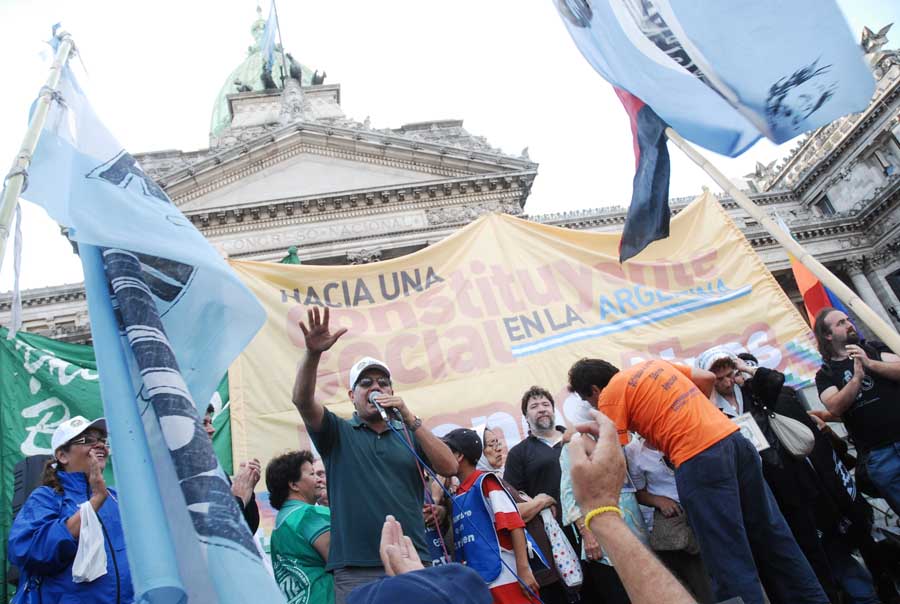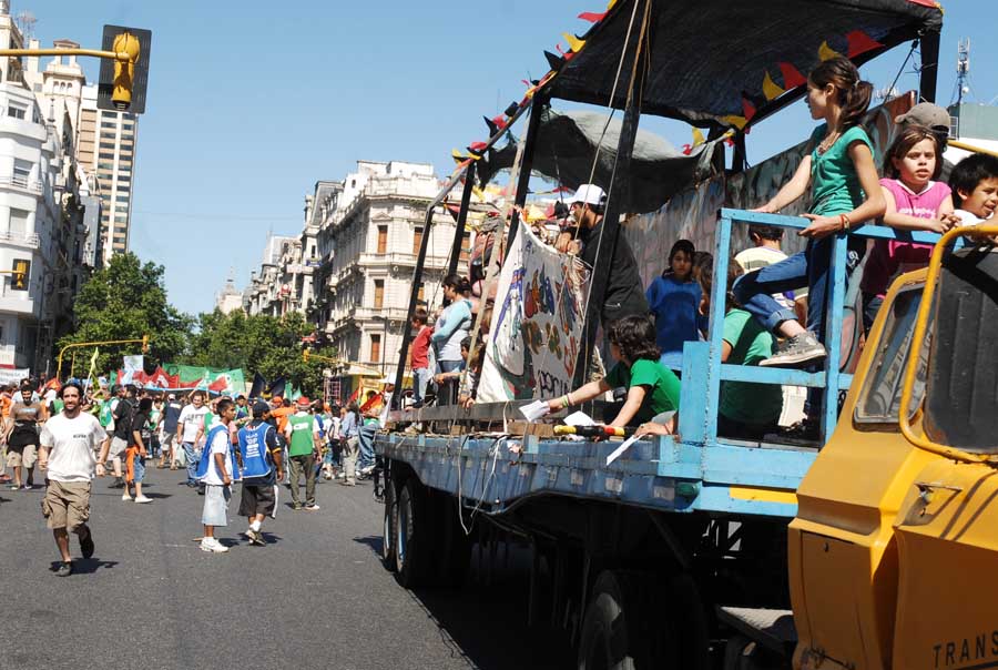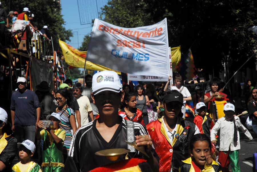 Bajo el sol abrazador del mediodía fueron llegando al centro porteño las distintas columnas de manifestantes para sumarse a la convocatoria de la Constituyente Social. A las carrozas de la Caravana Cultural por los Barrios, que había salido del barrio de Liniers esta mañana, se sumaron las banderas de las distintas organizaciones que marcharon para presentar las cuatro campañas públicas resueltas en noviembre pasado en la ciudad de Neuquén: “Distribución, Soberanía, Democracia e Integración Latinoamericana”, son los ejes que entre color y música dijeron presente esta tarde frente al Congreso Nacional.
