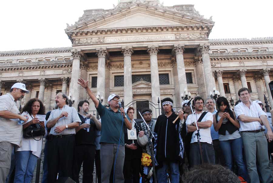 “Hermanos y hermanas: los estamos acompañando en esta lucha porque creemos que hay que trabajar todos juntos para levantar el ánimo y la fuerza. Como hermanos de sangre que somos estamos acá porque pedimos mucho corazón para los niños; para nuestros ancianos respeto, y para todos nosotros mucha lealtad”, expresó un representante de las comunidades mapuches.