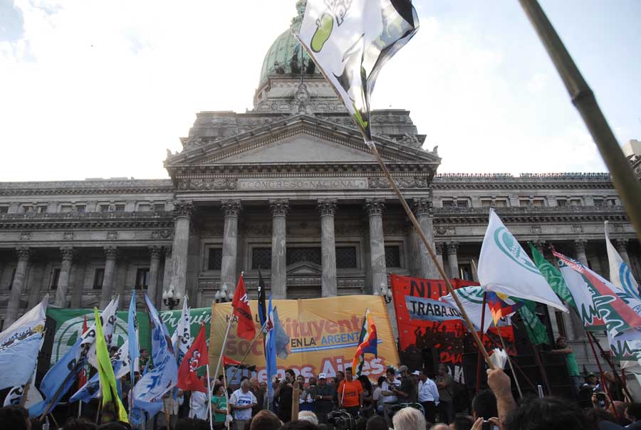 Más de 20 mil manifestantes se reunieron hoy frente al Congreso Nacional para acompañar la presentación de las campañas públicas que impulsará la Constituyente Social durante 2010. Antes, la Caravana Cultural recorrió distintos barrios porteños y se reunió con una nutrida columna de la CTA y de distintas organizaciones en la Avenida de Mayo y 9 de Julio. “Llegó la hora de trastocar estos años de resistencia en la construcción de una ofensiva por el gobierno de nosotros mismos. Y por eso tenemos que gozar de este día”, expresó Víctor De Gennaro al comenzar el acto central.