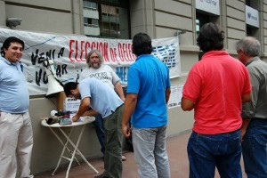 En la vereda del imponente edificio donde funcionan las oficinas de IBM, miembros del Sindicato de los Trabajadores de las Tecnologías de la Información y la Comunicación (CePETel-CTA), instalaron una mesa con todo lo necesario para cumplimentar el acto eleccionario. Planillas, urnas, votos, sobres y las autoridades constituidas comenzaron la tarea en un día típicamente veraniego.