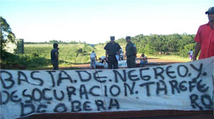 En Oberá el corte de ruta recién comenzó en horas de la tarde, tras el regreso del grupo de trabajadores que viajó a Posadas. Según denunciaron durante toda la jornada fueron presionados e intimidados por la gendarmería nacional. "Tuvimos mucha presión de la gendarmería que nos dicen que nos van a procesar, que vamos a tener causa judicial, nosotros estamos reclamando algo que nuestro derecho, que es justo, nosotros trabajamos y nos corresponde cobrar las asignaciones familiares", sostuvo Carlos Rodríguez delegado de Oberá desde el kilómetro 14 de la Ruta Nacional 14.
