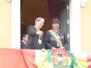 Por Mariano Vázquez, enviado especial. En la flamante Asamblea Legislativa Plurinacional, Evo Morales Ayma y Alvaro García Linera iniciaron su segundo mandato enterrando los viejos símbolos del Estado liberal-colonial y afirmando el inicio de un nuevo modelo político. Fiesta en la Plaza Murillo y en el estadio Hernando Siles. Fue una jornada cargada de simbolismo con un protagonismo vital del pueblo boliviano, de sus organizaciones campesinas originarias y sindicales después de 185 años de colonialismo, racismo, exclusión y neoliberalismo. Como lo señalaron en sus discursos el Presidente y Vicepresidente, el horizonte de este segundo mandato, que se extenderá hasta el 2015, es el de un Estado Plurinacional con un modelo socialista.
