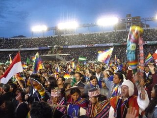 Fue una jornada cargada de simbolismo con un protagonismo vital del pueblo boliviano, de sus organizaciones campesinas originarias y sindicales después de 185 años de colonialismo, racismo, exclusión y neoliberalismo. Como lo señalaron en sus discursos el Presidente y Vicepresidente, el horizonte de este segundo mandato, que se extenderá hasta el 2015, es el de un Estado Plurinacional con un modelo socialista.