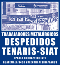 La empresa Tenaris Siat, el brazo siderúrgico de Techint, despidió a 22 trabajadores de su planta ubicada en la localidad bonaerense de Valentín Alsina, partido de Lanús, a quienes consideraba eventuales. Tras un paro de las actividades y una movilización de los empleados, el ministerio de Trabajo de la provincia de Buenos Aires dictó un fallo a favor de las reincorporaciones que la compañía no acató. Hoy los operarios acampan en la puerta.
