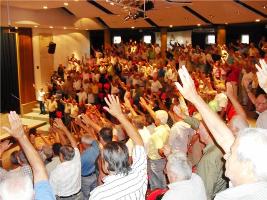 La masiva asamblea de ayer fue convocada por los centros de jubilados y pensionados nacionales de Villa Constitución calle Jujuy 54; de barrio Galotto “2 de Septiembre” y de barrio Hoppe “9 de Julio” a los que se sumaron sus pares Metalúrgicos e instituciones similares de Arroyo Seco, Pavón, Godoy, Empalme Villa Constitución y San Nicolás.