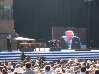 Pasadas las 15, algunos de los presidentes invitados fueron saliendo del Palacio Legislativo. En el amplio campo abierto en donde se encuentra, la multitud los distinguía fácilmente bajando las escalinatas. Los mandatarios de Brasil, Luiz Inácio Lula da Silva; de Paraguay, Fernando Lugo; de Bolivia, Evo Morales; de Ecuador, Rafael Correa, y de Venezuela, Hugo Chávez, fueron aclamados.