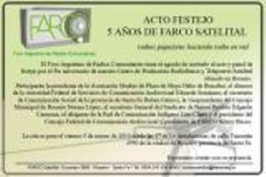 El Foro Argentino de Radios Comunitarias (FARCO) invita a la celebración de los 5 años de la puesta en marcha de su centro de producción radiofónica y telepuerto satelital que funciona desde la ciudad de Rosario. La cita es para el viernes 5 de marzo de 2010 desde las 17 en las instalaciones de calle Tucumán 3950 de la ciudad de Rosario, provincia de Santa Fe.