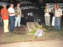 En la oportunidad se recordó a las víctimas del terrorismo de estado en nuestra ciudad colocando gigantografías con sus fotos y colocando seis plantines alrededor de la placa que registra sus nombres. A la vez se reiteró el reclamo a las autoridades municipales para esa placa sea levantada ya que se encuentra n el piso y creemos que lo justo es que se erija a una altura que simbolice plenamente el valor de la lucha y entrega de los compañeros asesinados.