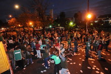 Después de una extensa jornada de lucha y participación, cientos de compañeros se aprontaban para cenar un rico guiso en la olla popular instalada en la plaza.